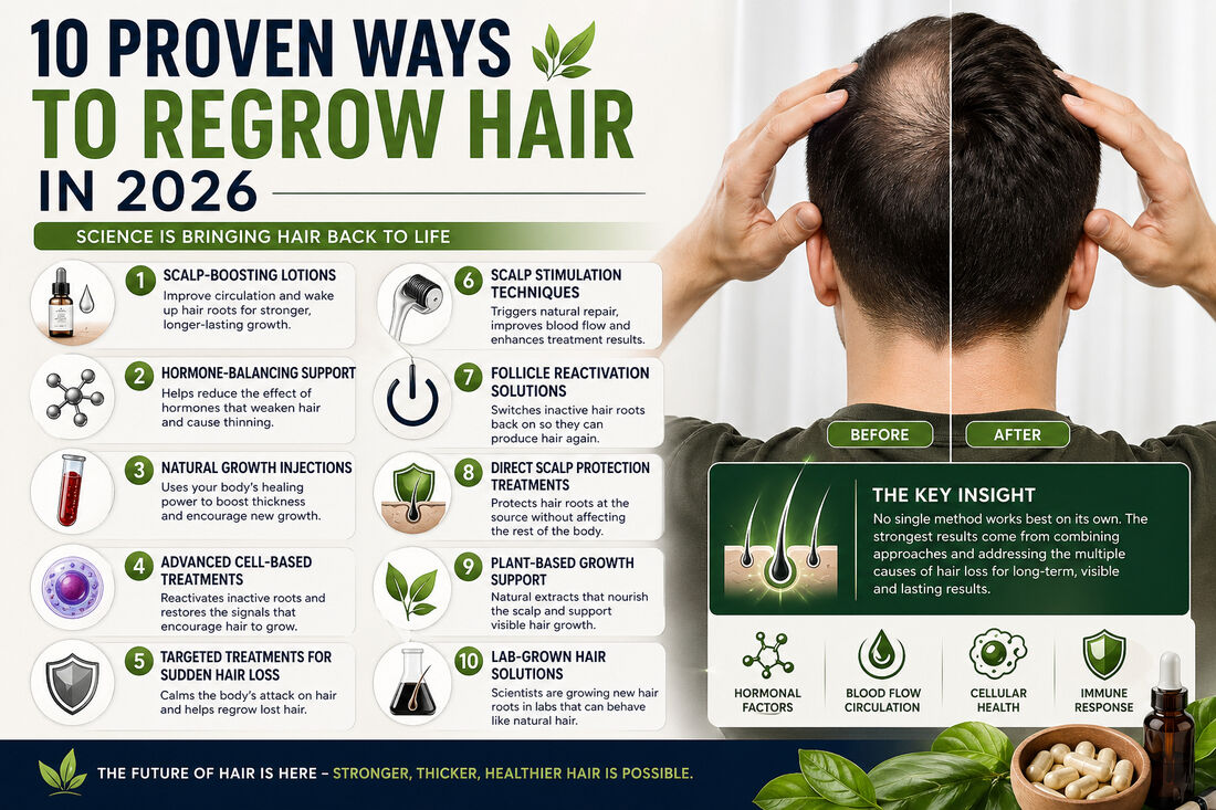 Hair loss used to feel like something you just had to accept, but that is no longer the case as new research and real-world results now show that hair can often be encouraged to grow back by supporting the body in the right way, and here are 10 of the most effective and up-to-date ways people are using to regrow hair today.