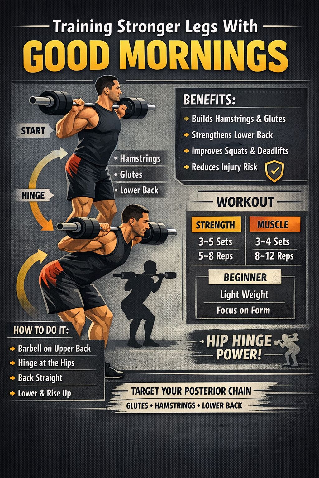 If you’re serious about building powerful legs, you can’t just rely on squats and leg presses. True lower-body strength comes from developing the entire posterior chain — glutes, hamstrings, and lower back — and one of the most underrated exercises for this is the good morning. Despite its slightly unusual name, the good morning is a highly effective movement for increasing strength, improving athletic performance, and reducing the risk of injury.